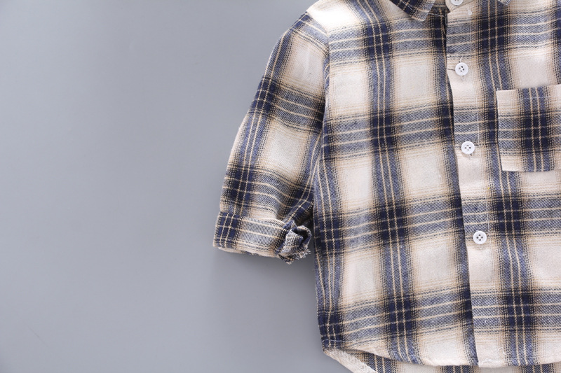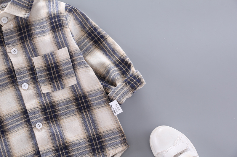 Boys And Girls Plaid Shirts Korean Style Loose Lapel Long Sleeves