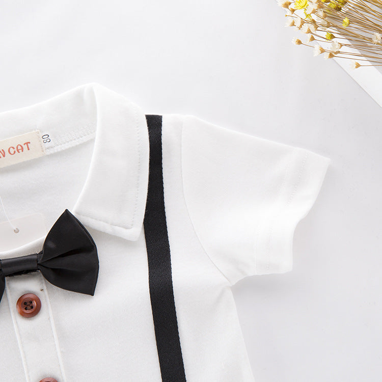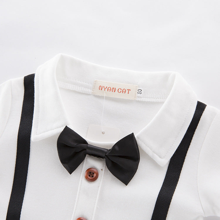 Children's Denim Suit New Summer Boy's Short-sleeved T-shirt Shoulder Strap Jeans 2-Piece Set