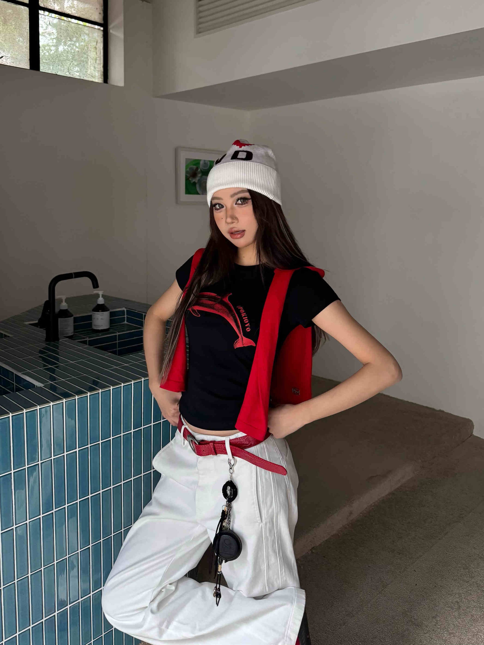 Dolphin Printing Shoulder Short-sleeved T-shirt Slim Fit Skinny Top