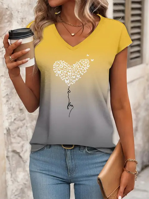 Fashion Casual All-matching Comfortable Printed Slip Shoulder T-shirt