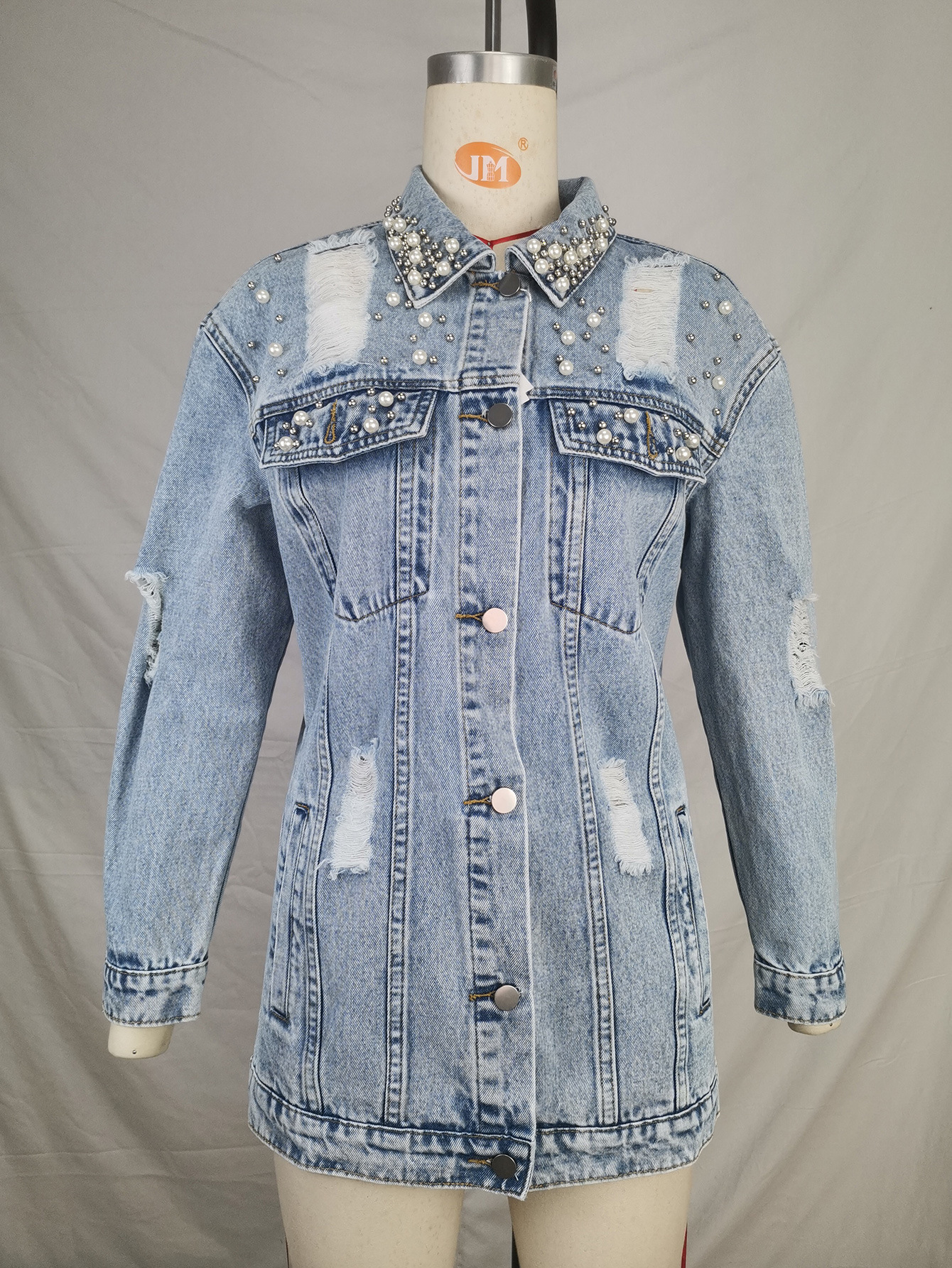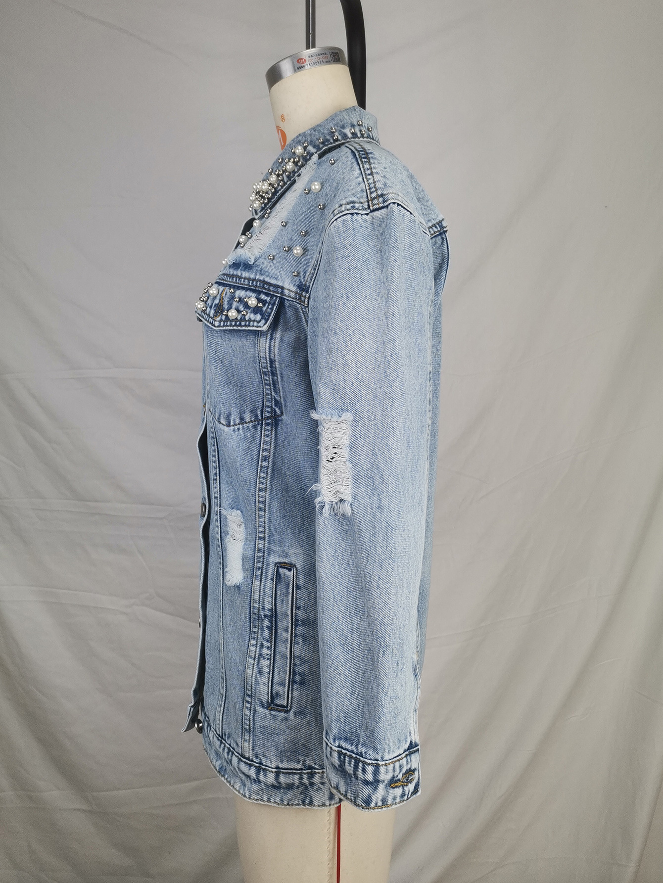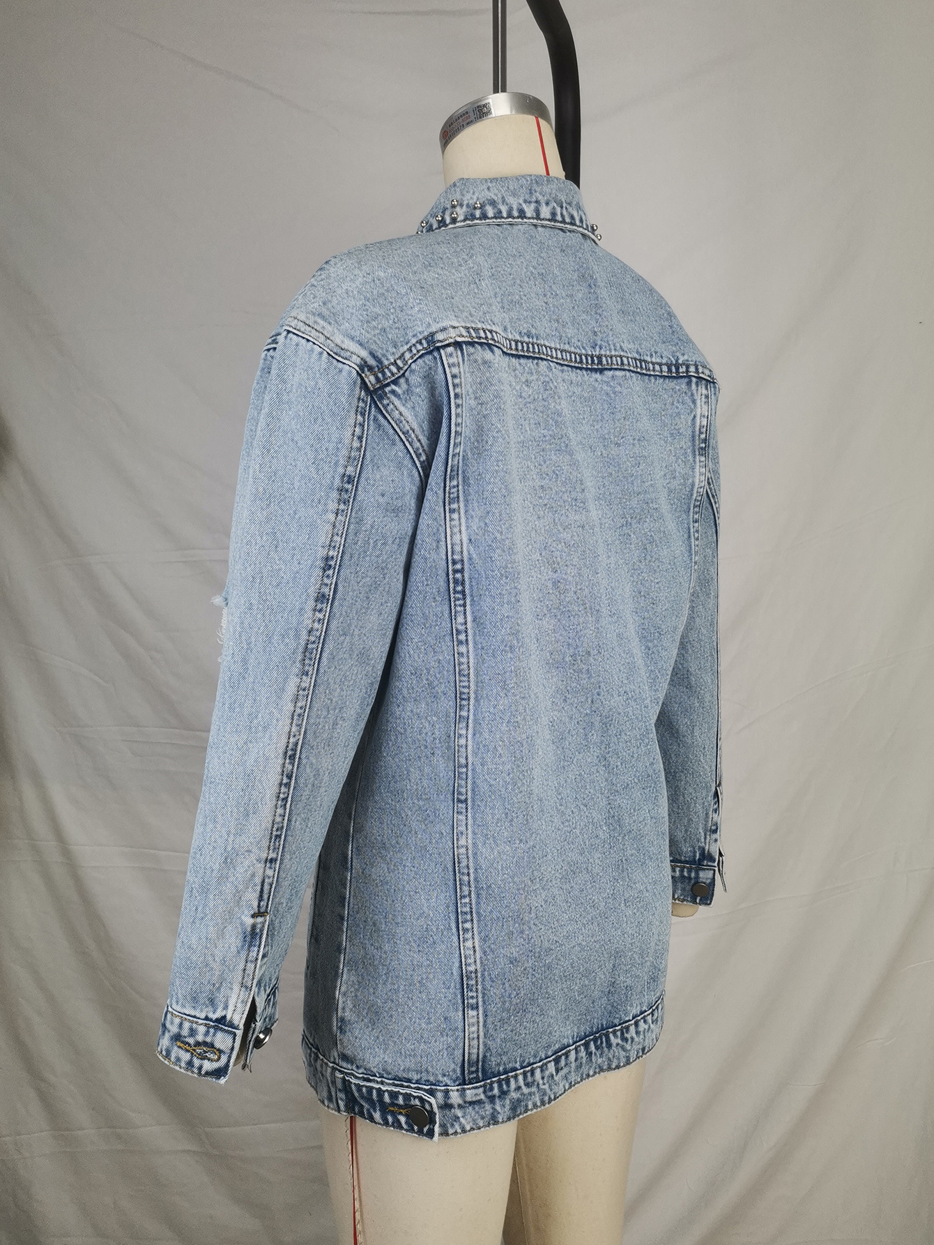 Fashion Solid Color Ripped Mid-length Denim Jacket