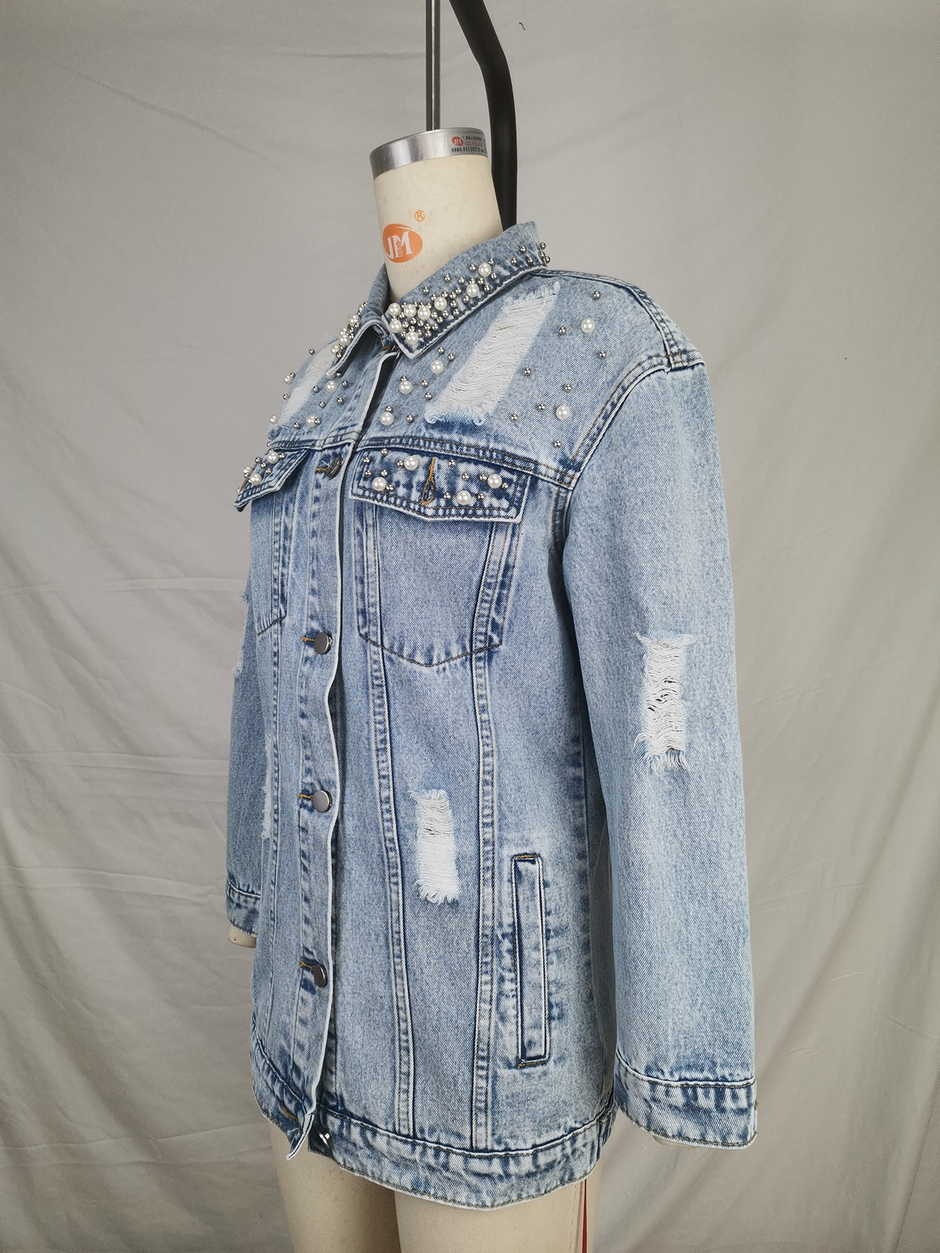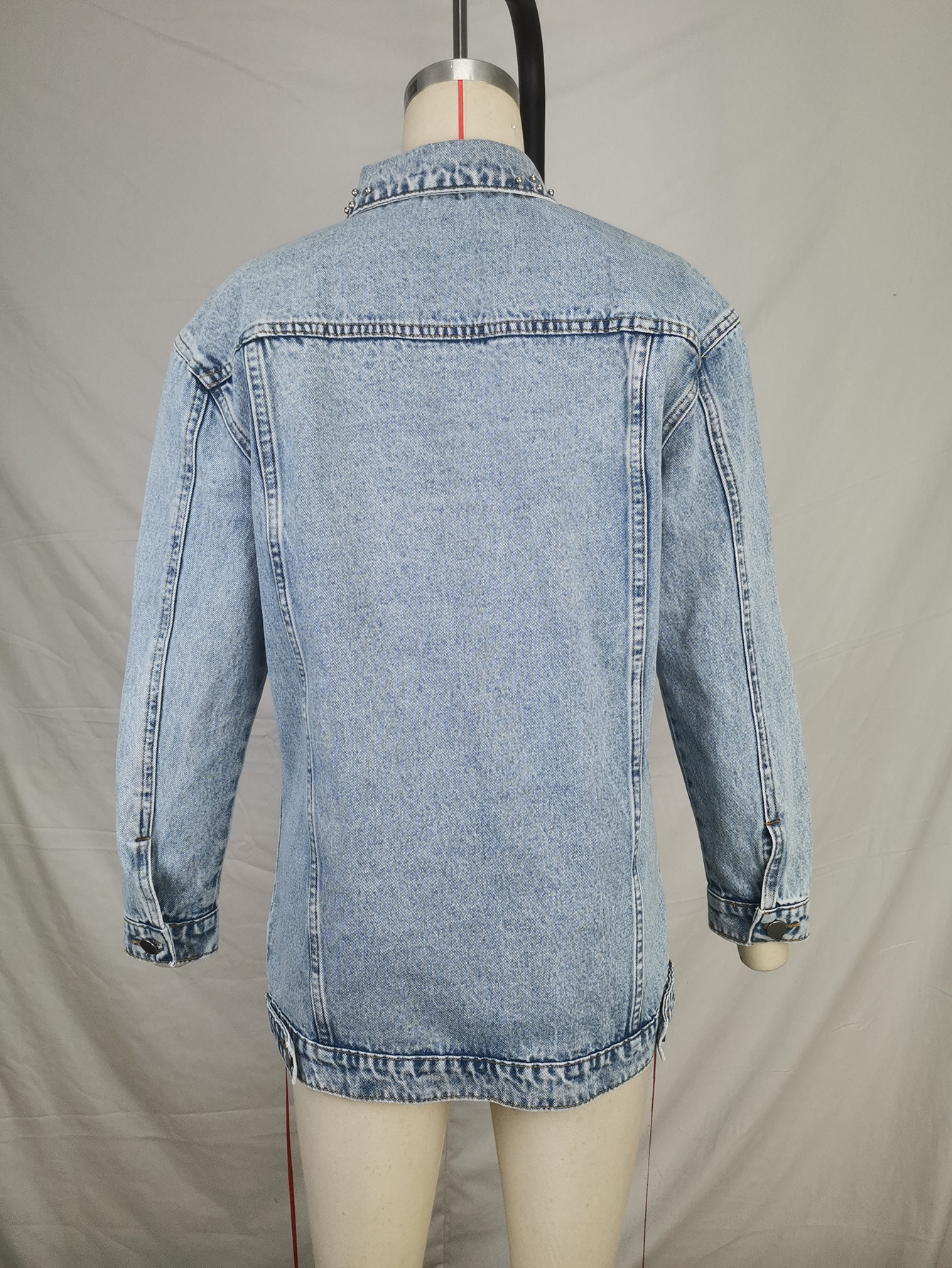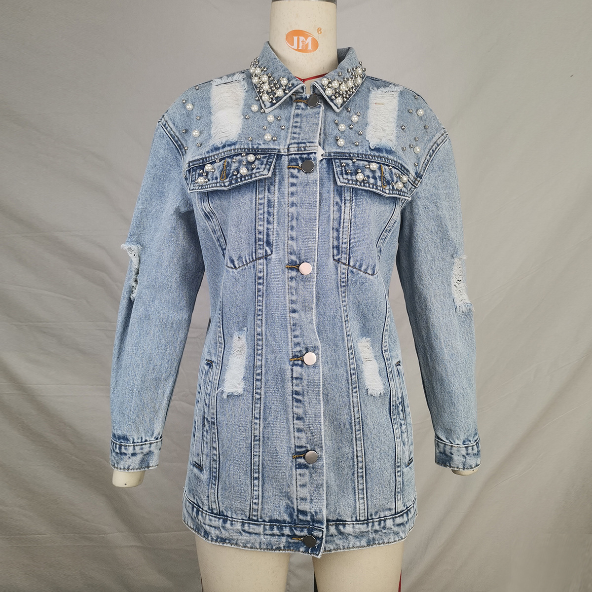 Fashion Solid Color Ripped Mid-length Denim Jacket