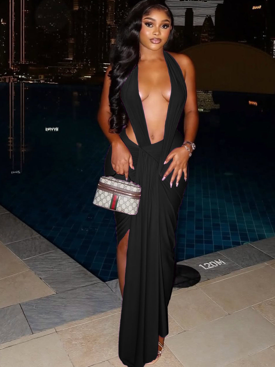 Fashionable Figure-hugging Solid-color Hollow-out Design Backless One-piece Dress