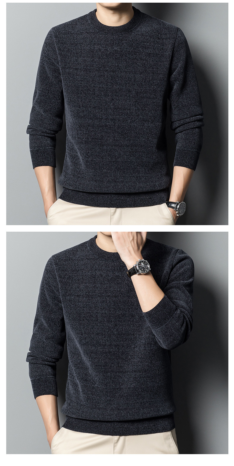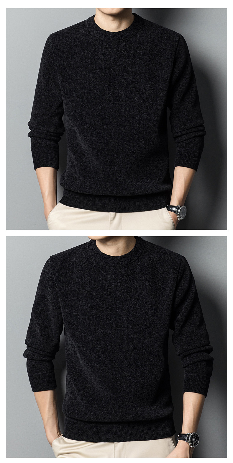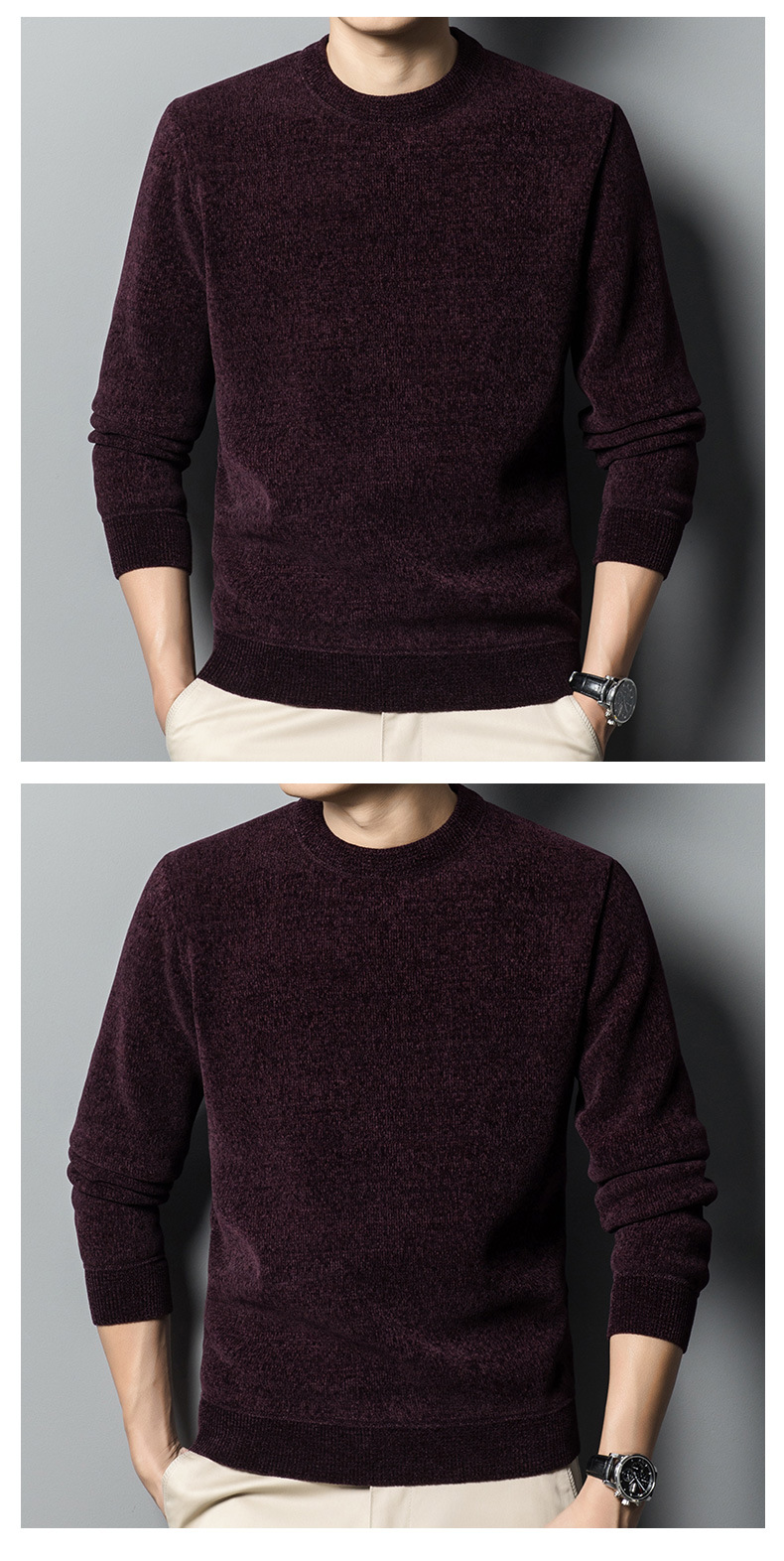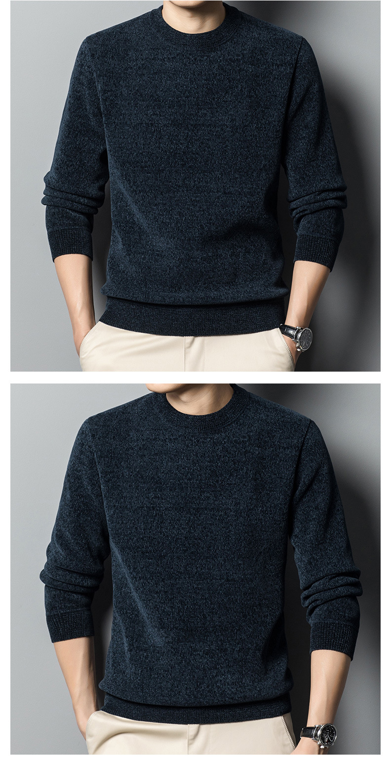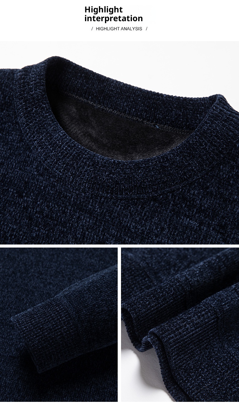 Fleece-lined Keep Warm Pure Color Men's Sweater