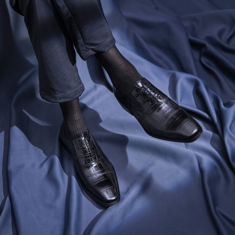Formal Business First Layer Cowhide Hand Colored Embossed Men's Shoes