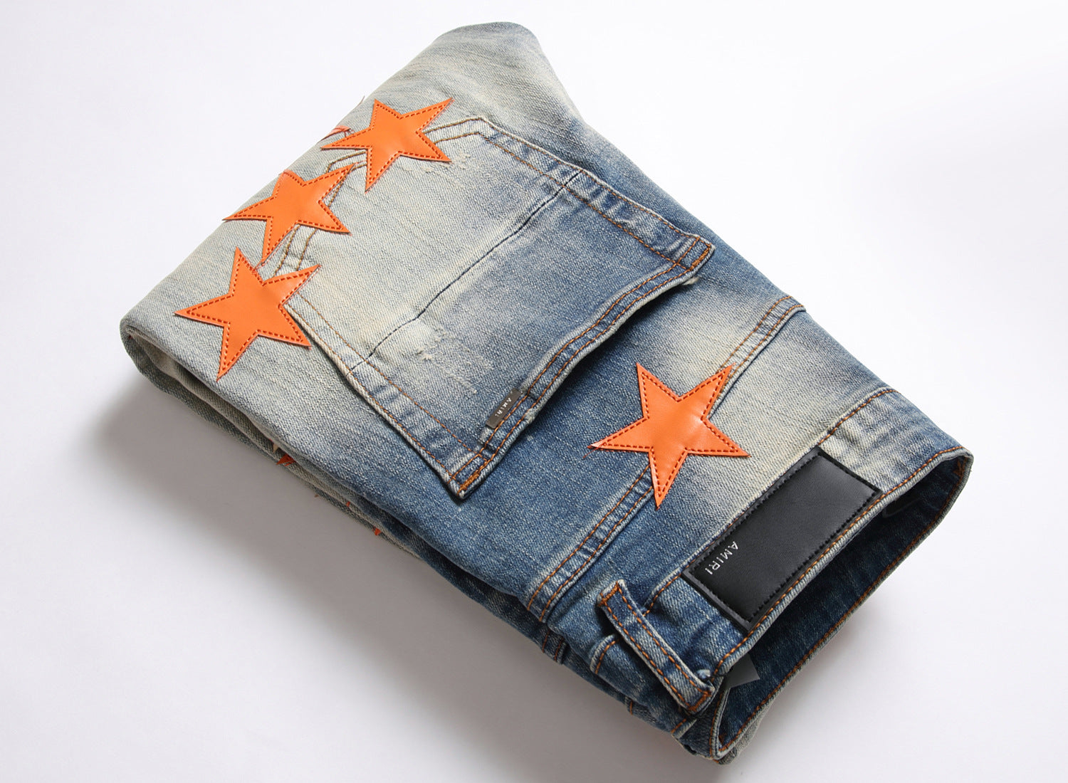 High Street New Ripped Orange XINGX Patch Stretch Jeans Men