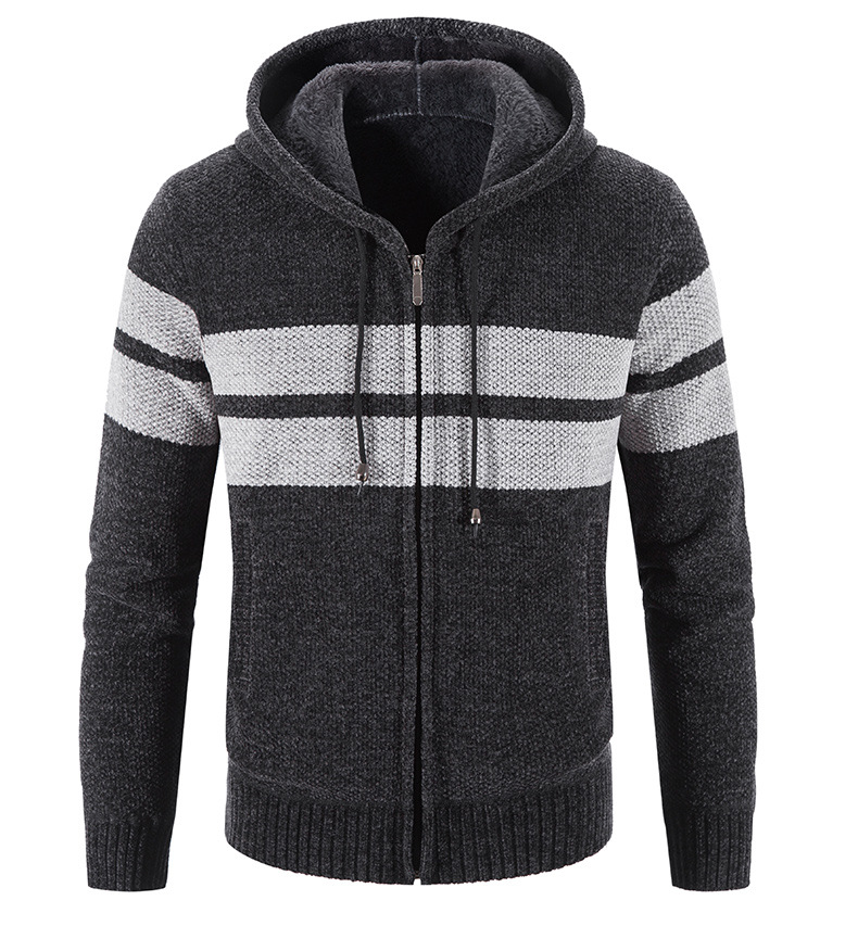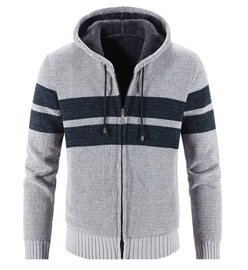 Hooded Striped Color-blocking Casual Plus Velvet Cardigan