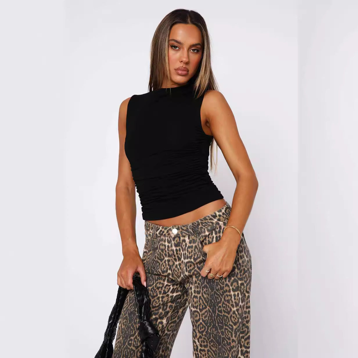 K Solid Color Sleeveless Slim Sexy Short Sleeve