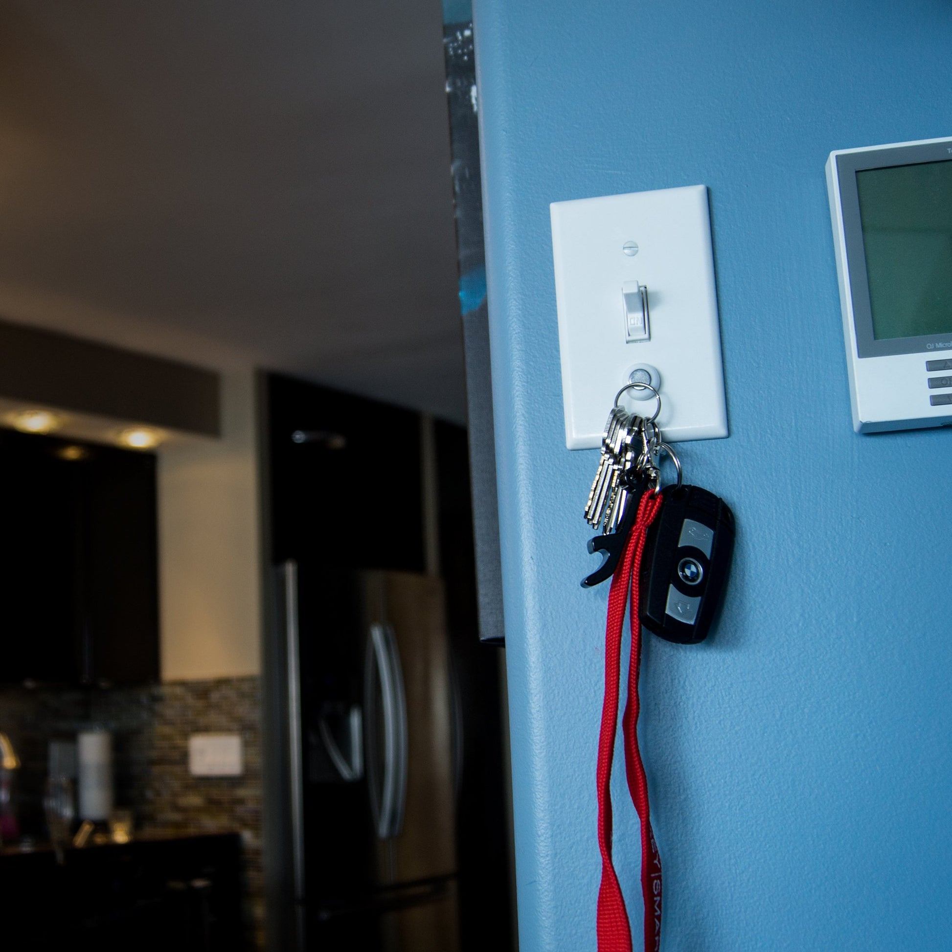 2. It installs the KeyCatch on the switch panel through 3M adhesive backing. It can easily create a key bench without drilling and complicated installation, which can effectively save space and can also be used as a reminder when going out.