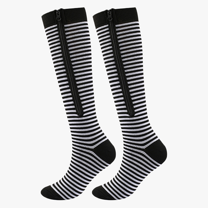 Color: Black Foot wrap compression socks, skin color foot wrap compression socks, black and white striped twin screw type