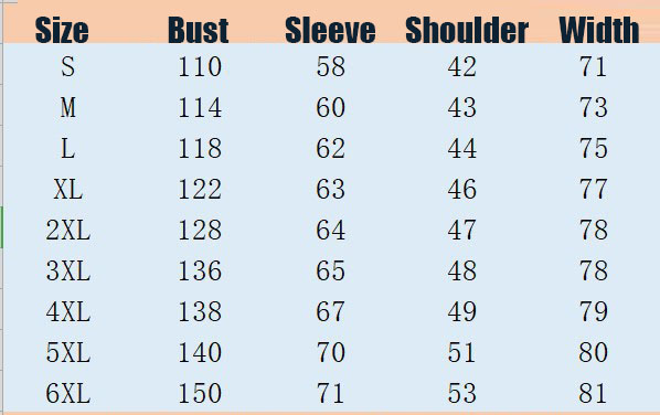 Size: S/M/L/XL/XXL/3XL/4XL/5XL/6XL