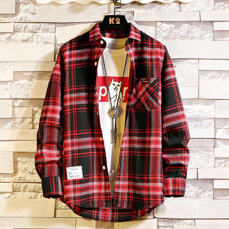 Men's Loose Plaid Long-sleeved Shirt Casual Shirt
