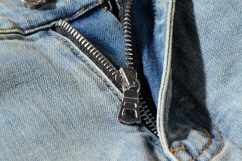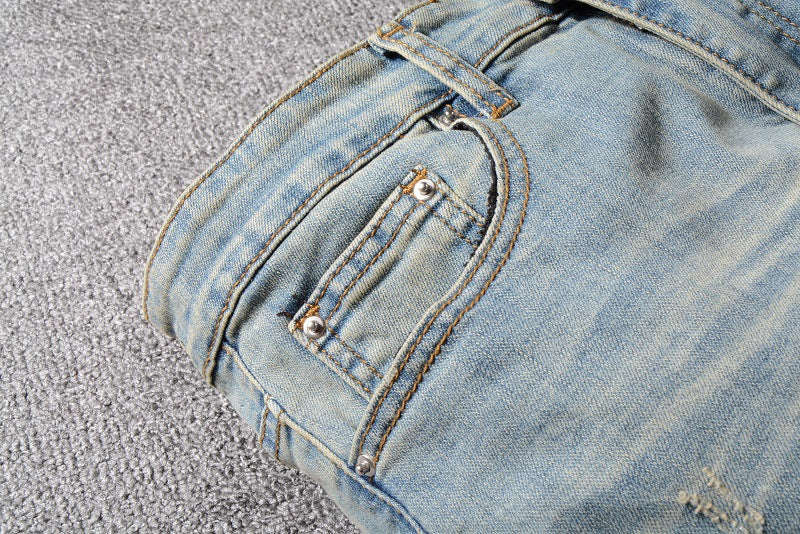 Men's Pleated Color Block Jeans Youth Slim-Fit Pants