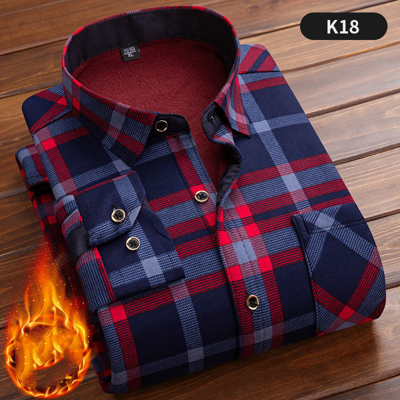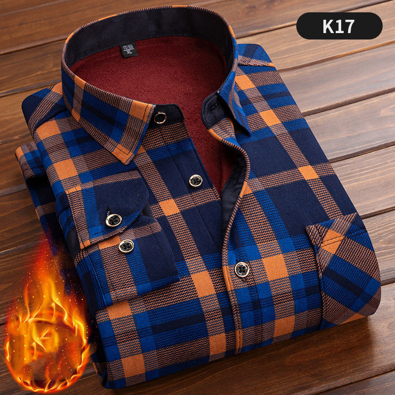 Men's Plus Velvet Padded Warm Shirt Long Sleeves