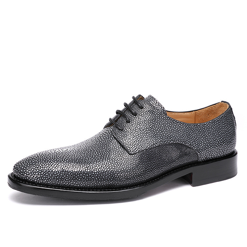 Pearl Fish Skin Men's Shoes Pure Manual Lace Up Low Heel