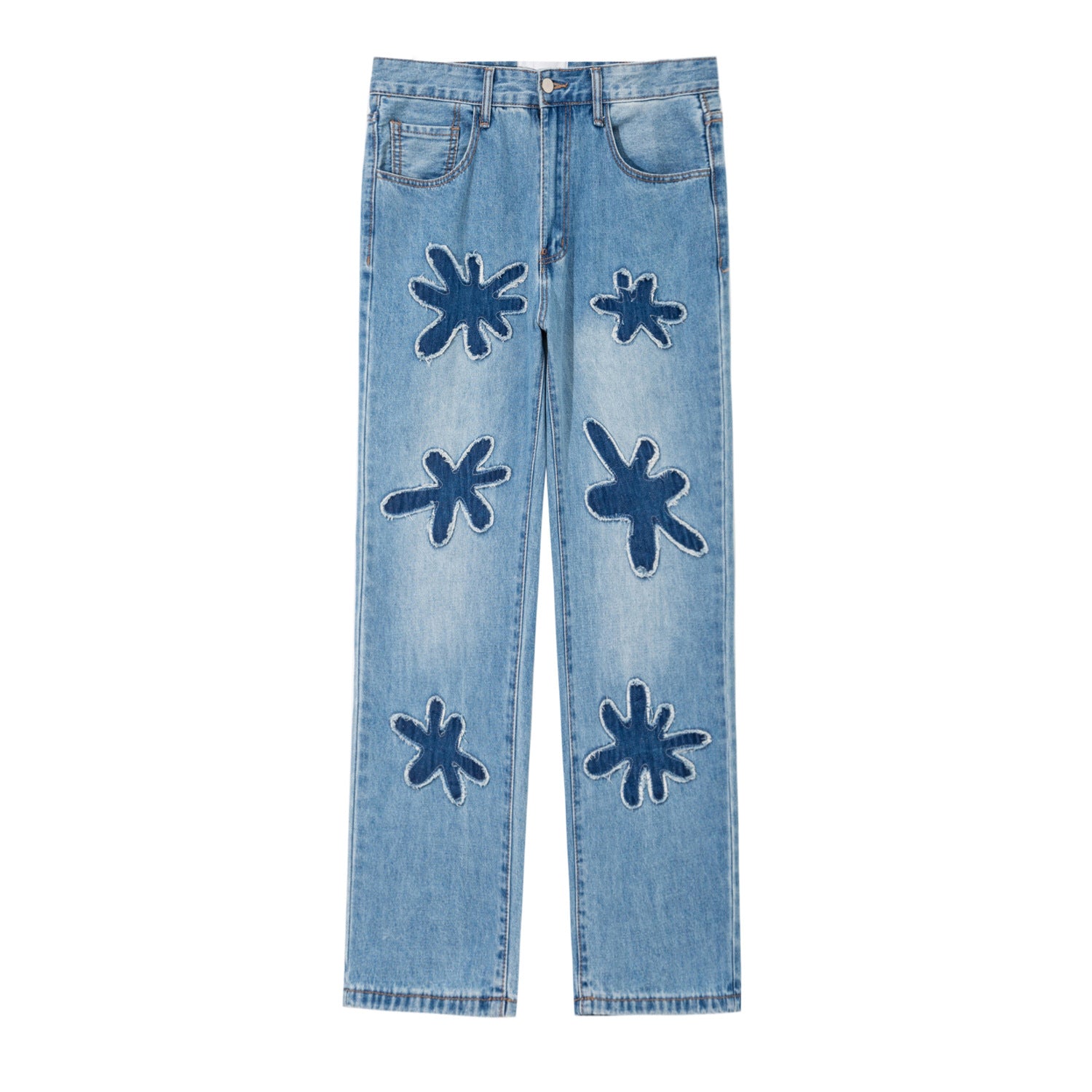Retro Burnt Flowers Niche Wash Old Jeans For Men And Women