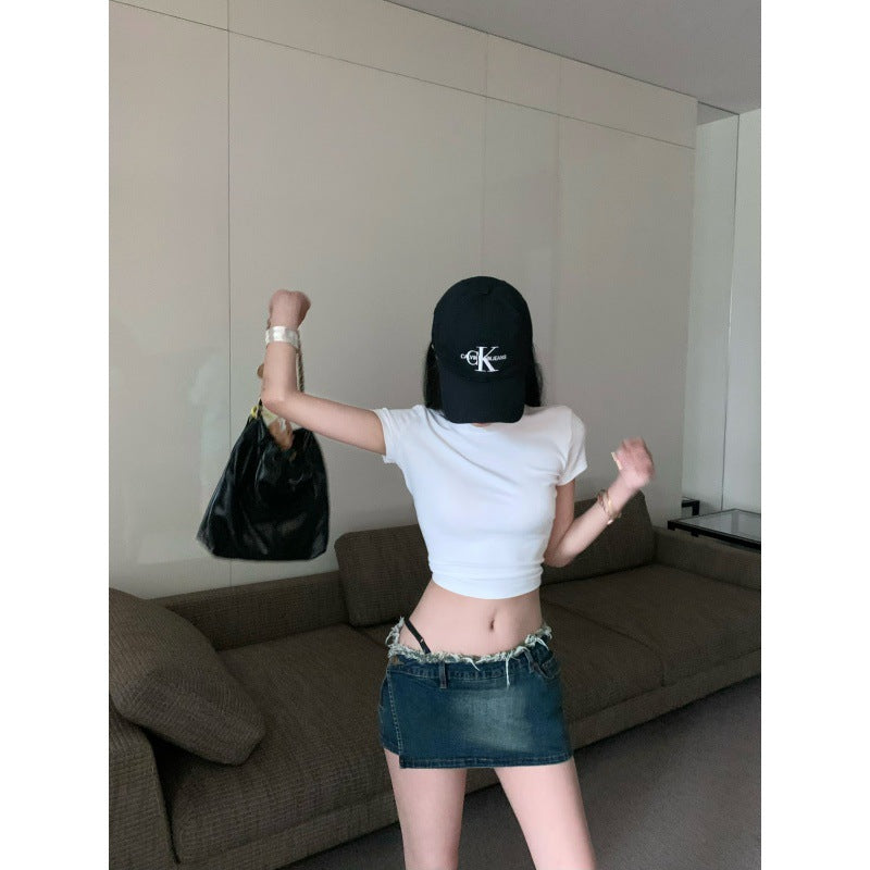 Retro Denim Short Culotte Low Waist Slimming Sheath