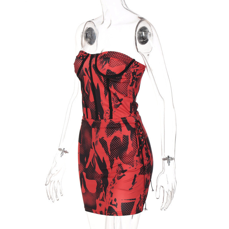 Sleeveless Short Top Skinny Sheath Drawstring High Waist Skirt