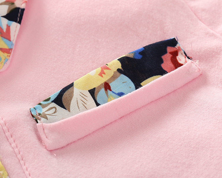 Spring New Children'S Wear Boys' Short Sleeve Shirt With Floral Print Pants Suit