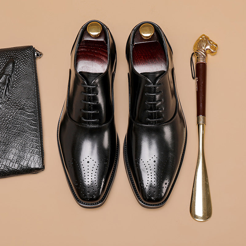 Summer New Men's Leather Shoes Head Layer Cowhide Hand-polished Brock Business Shoes