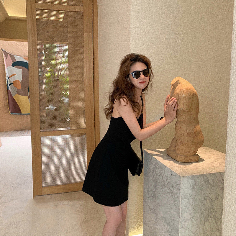 Summer New Women's Black Suspender Skirt Temperament Goddess Fan Clothes Short Slim Dress Cross-Border