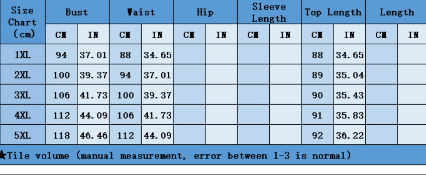 Sizes: 1XL, 2XL, 3XL, 4XL, 5XL