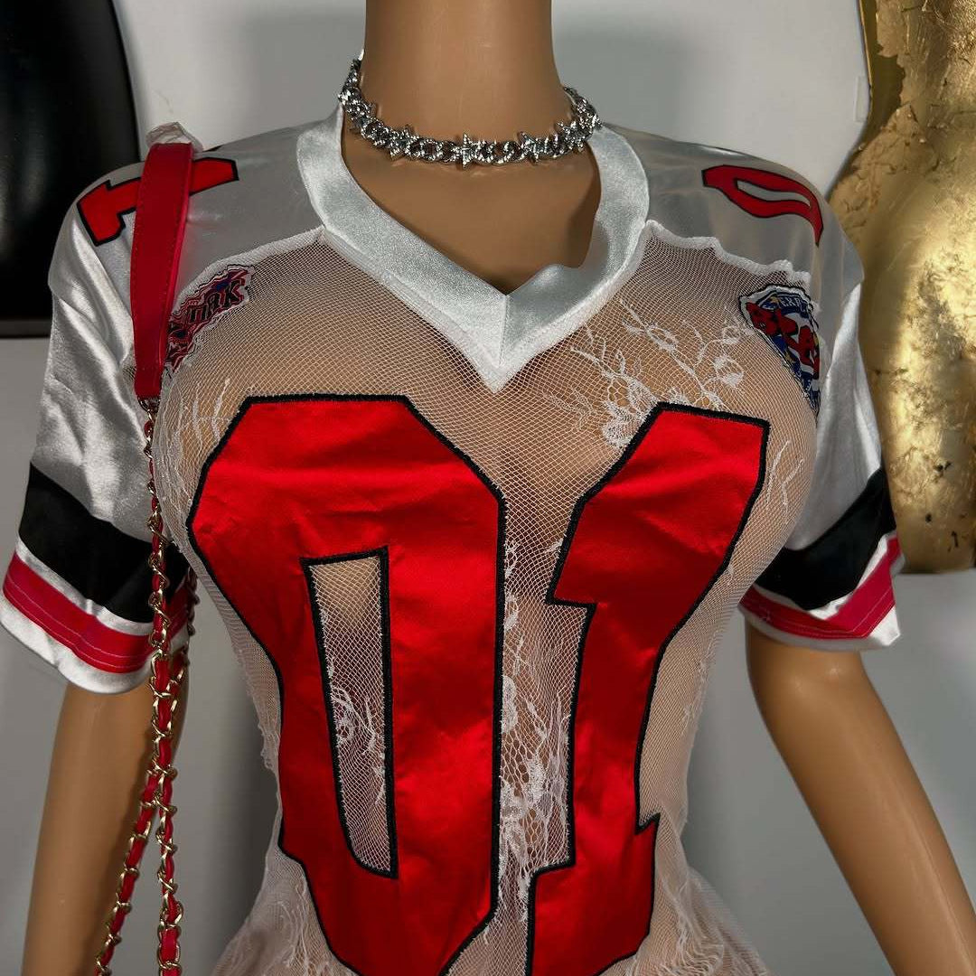 Women's Fashionable And Sexy Lace Embroidered Letter Short-Sleeve Dress