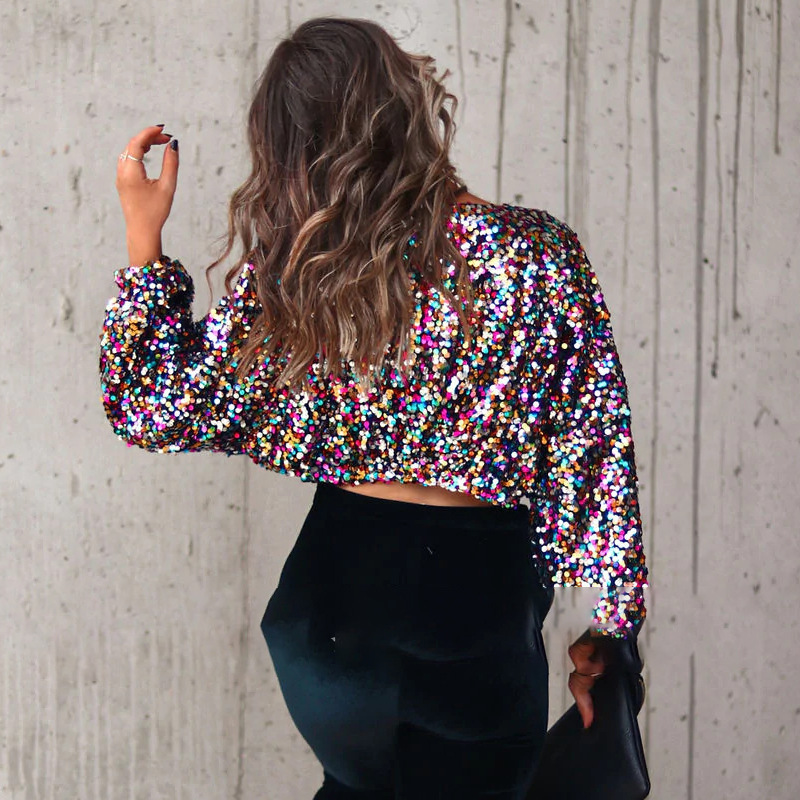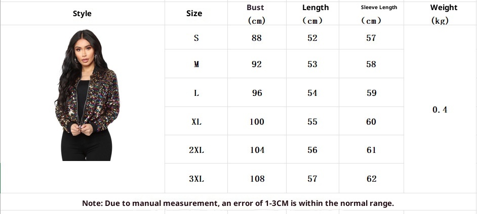 Women's Sequins Zipper Clothes Long Sleeve Cardigan Jacket