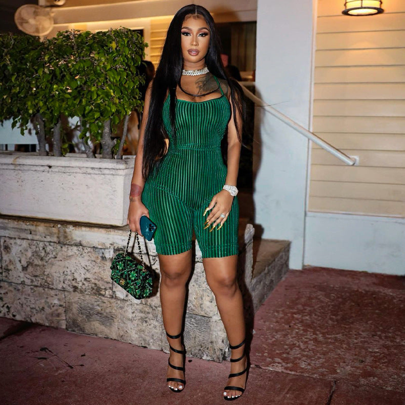 Women's Sleeveless Tie Halter Sports Fitness Jumpsuit