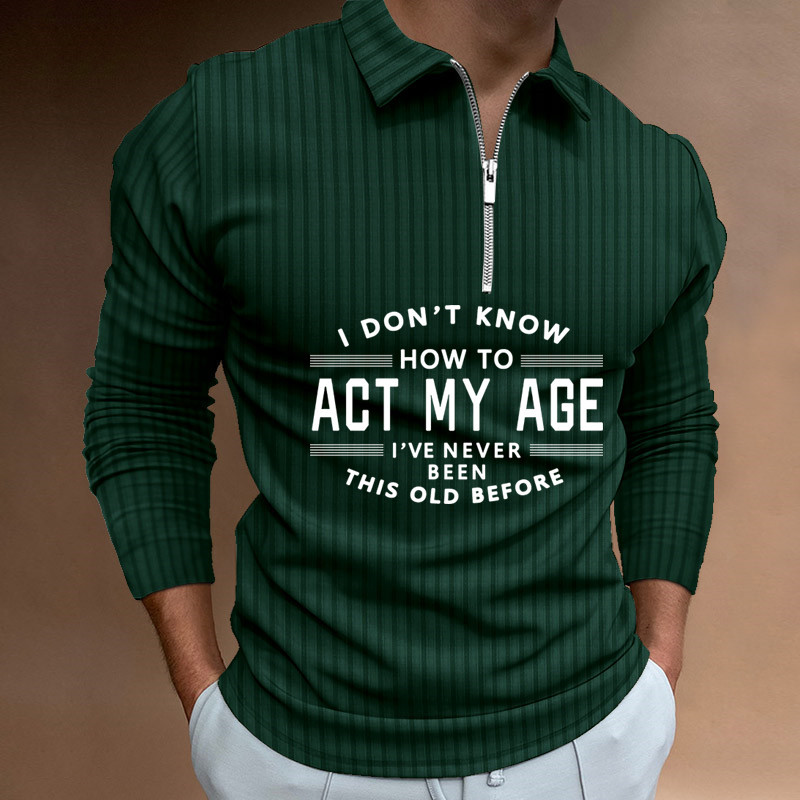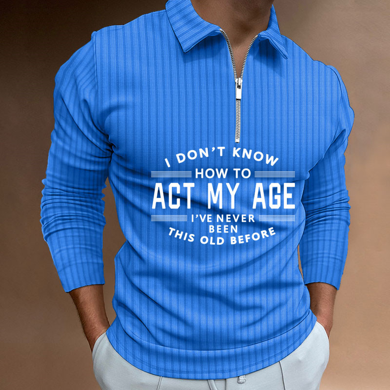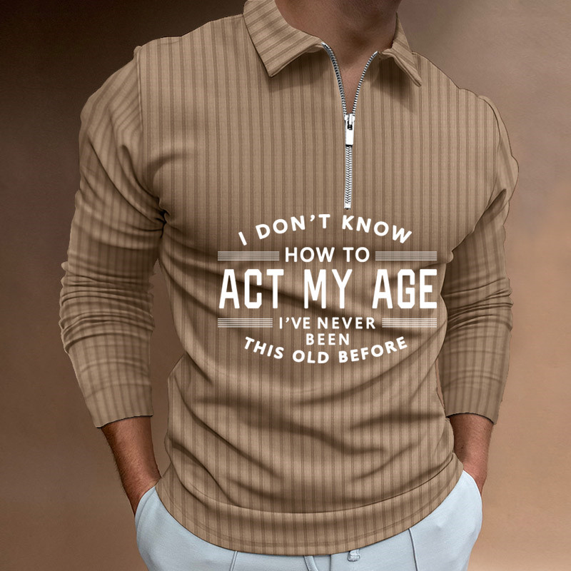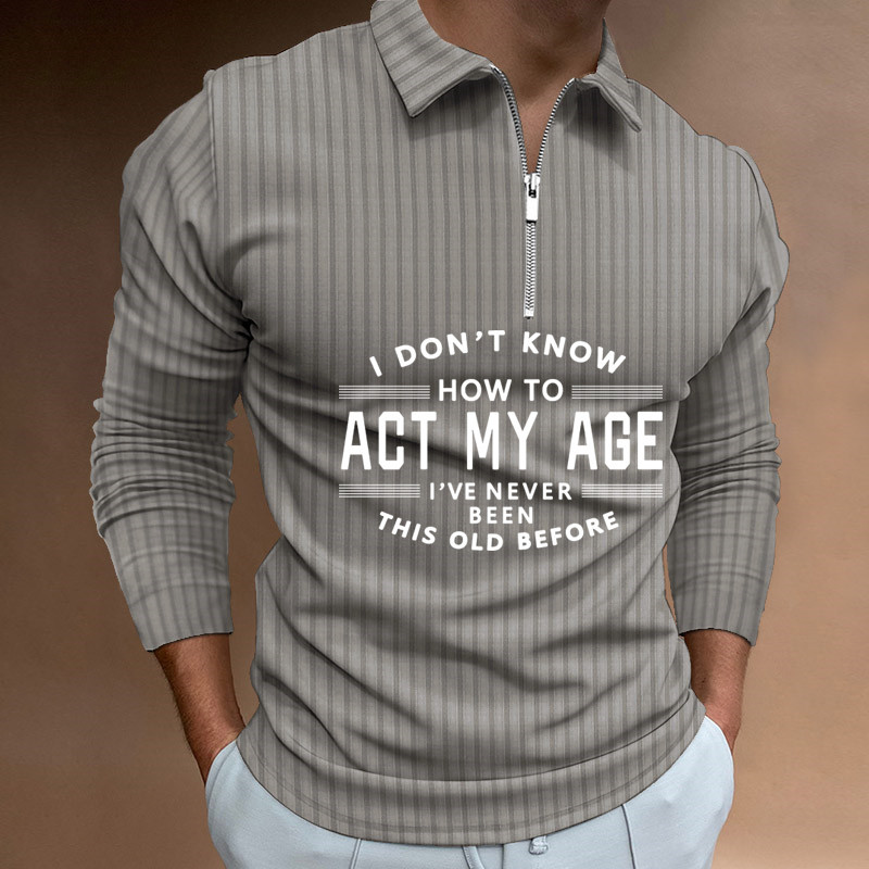 Zipper Striped Long Sleeved Men's Polo Shirt